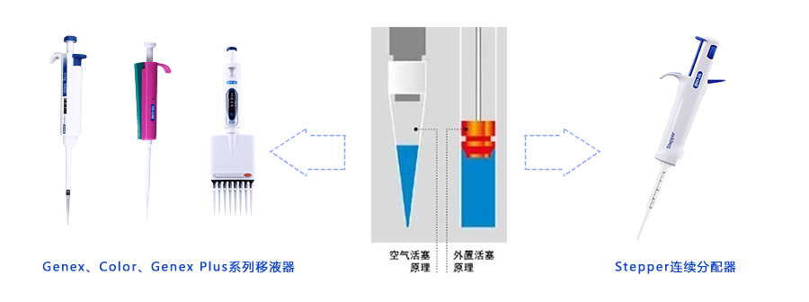 一般說(shuō)來(lái),移液器分為兩種,一種是空氣置換式(官方稱(chēng)謂,也就是我們通常使用的移液器);另一種是外置活塞式(業(yè)內(nèi)的通用說(shuō)法,也有稱(chēng)正向置換式),常被作為移取特殊液體的移液器,應(yīng)用范圍比較窄。